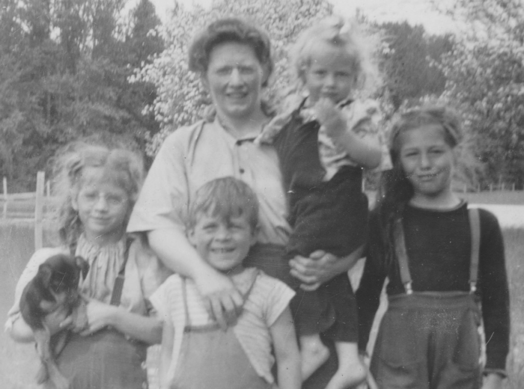 My grandmother, Kathy, visited us often and we did her as well. This picture of my grandmother with her children includes my mother on the far right.